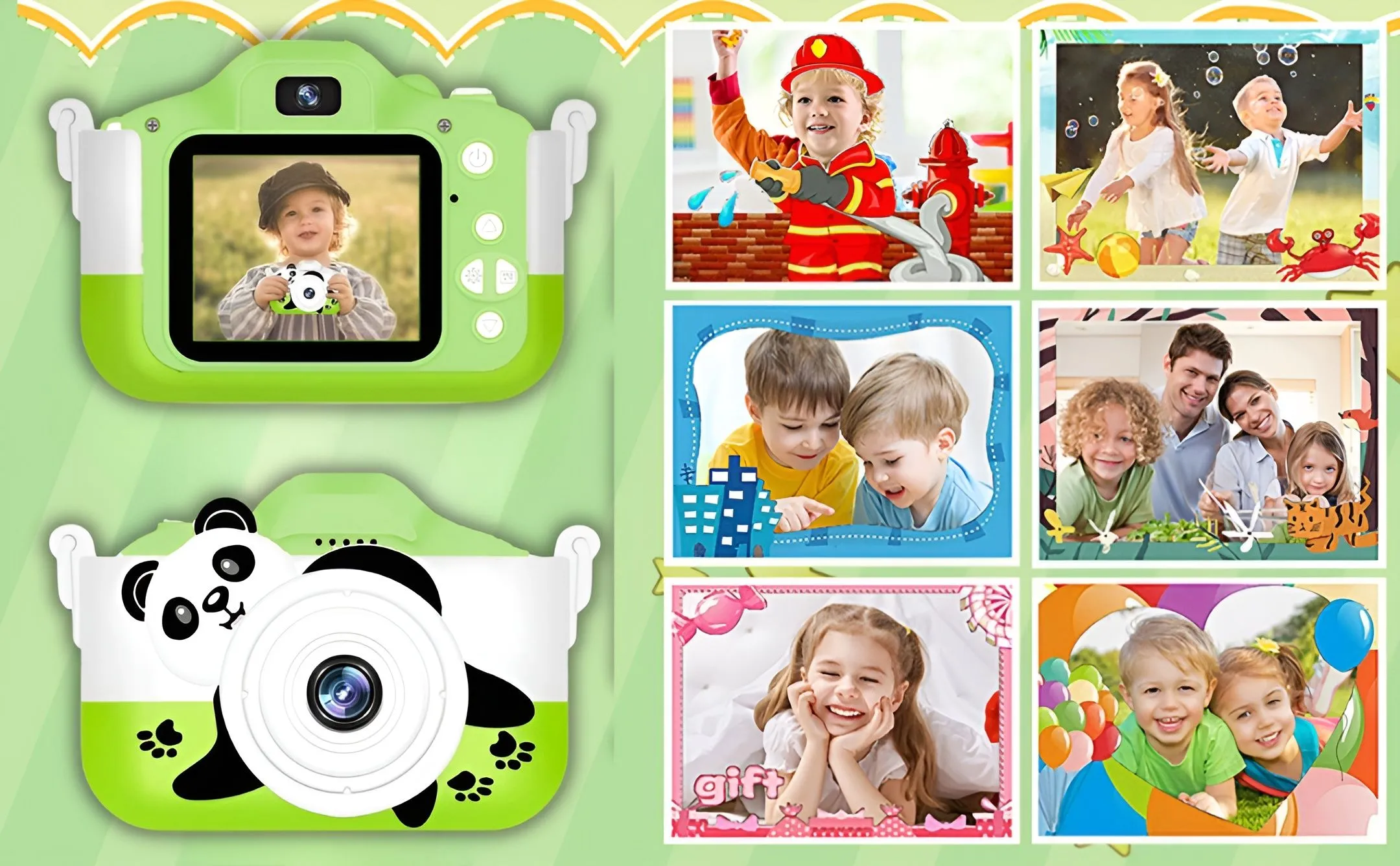 Cyfrowy mini aparat dla dzieci oferuje rozmaite funkcje, takie jak kolorowe filtry do zdjęć i mnóstwo foto ramek. Pociechy mogą z łatwością wybrać tło i ramkę do zdjęcia na aparacie i uwieczniać unikatowe chwile.