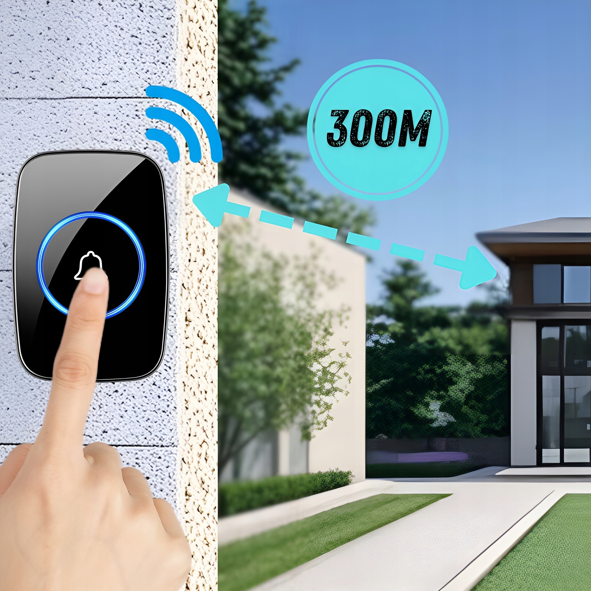 Zasięg naszego nadajnika wynosi aż 300 metrów w otwartym terenie, dzięki czemu dzwonek dotrze do odbiornika, nawet jeśli zamontujesz go na dużej działce, przy furtce czy w ogrodzie – niezawodnie i bez problemu!