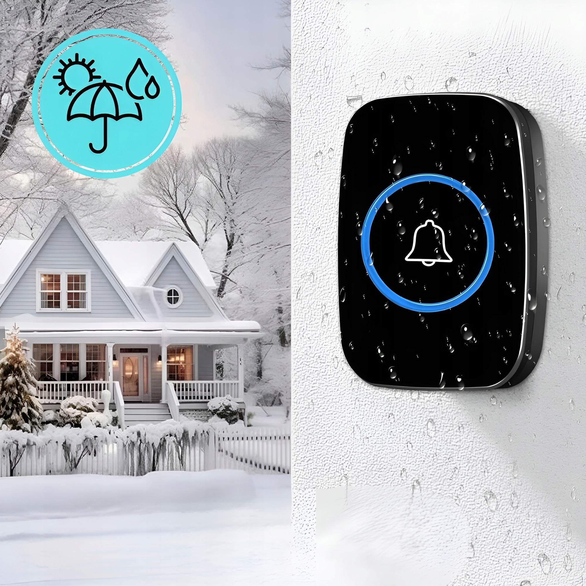 Dzięki klasie szczelności IP44 oraz odporności na temperatury w zakresie od -20°C do +65°C, nasz dzwonek bezprzewodowy sprawdzi się w deszczu, wietrze, a także w skrajnych warunkach pogodowych. Działa niezawodnie przez cały rok, niezależnie od pory roku czy temperatury!