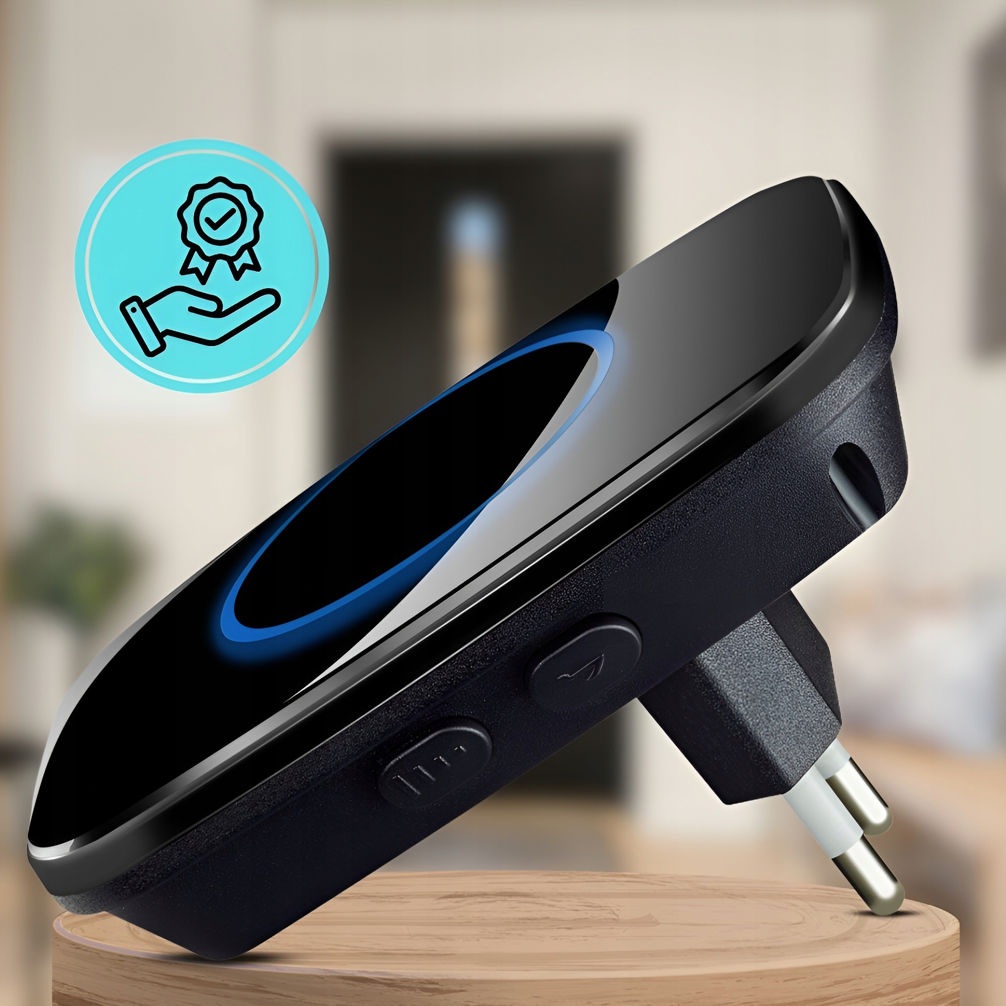 ✔️ Bezprzewodowy i łatwy montaż – odbiornik podłączasz do gniazdka, nadajnik mocujesz dwustronną taśmą lub wkrętami (w zestawie)