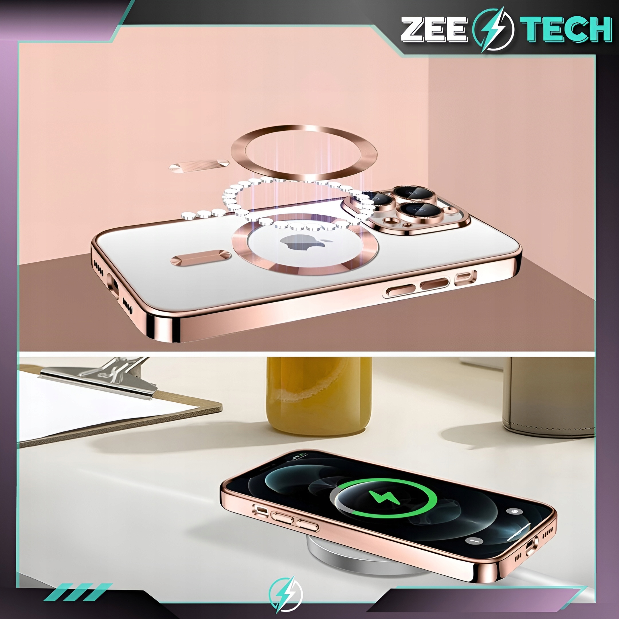 ⭐ Etui o silikonowej konstrukcji z wbudowanym magnetycznym pierścieniem, który jest kompatybilny z akcesoriami MagSafe.