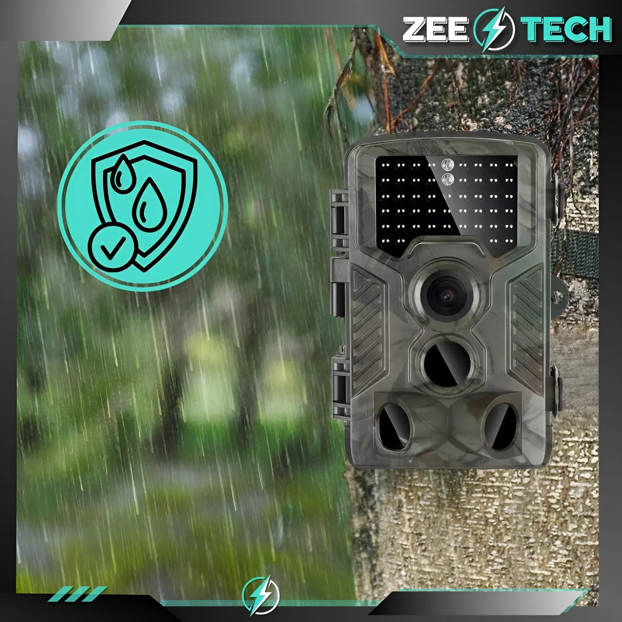 Nasz model fotopułapki posiada solidną obudowę z certyfikatem IP65, zapewniającą pełną odporność na deszcz, kurz i ekstremalne temperatury, co gwarantuje niezawodność w każdych warunkach pogodowych.