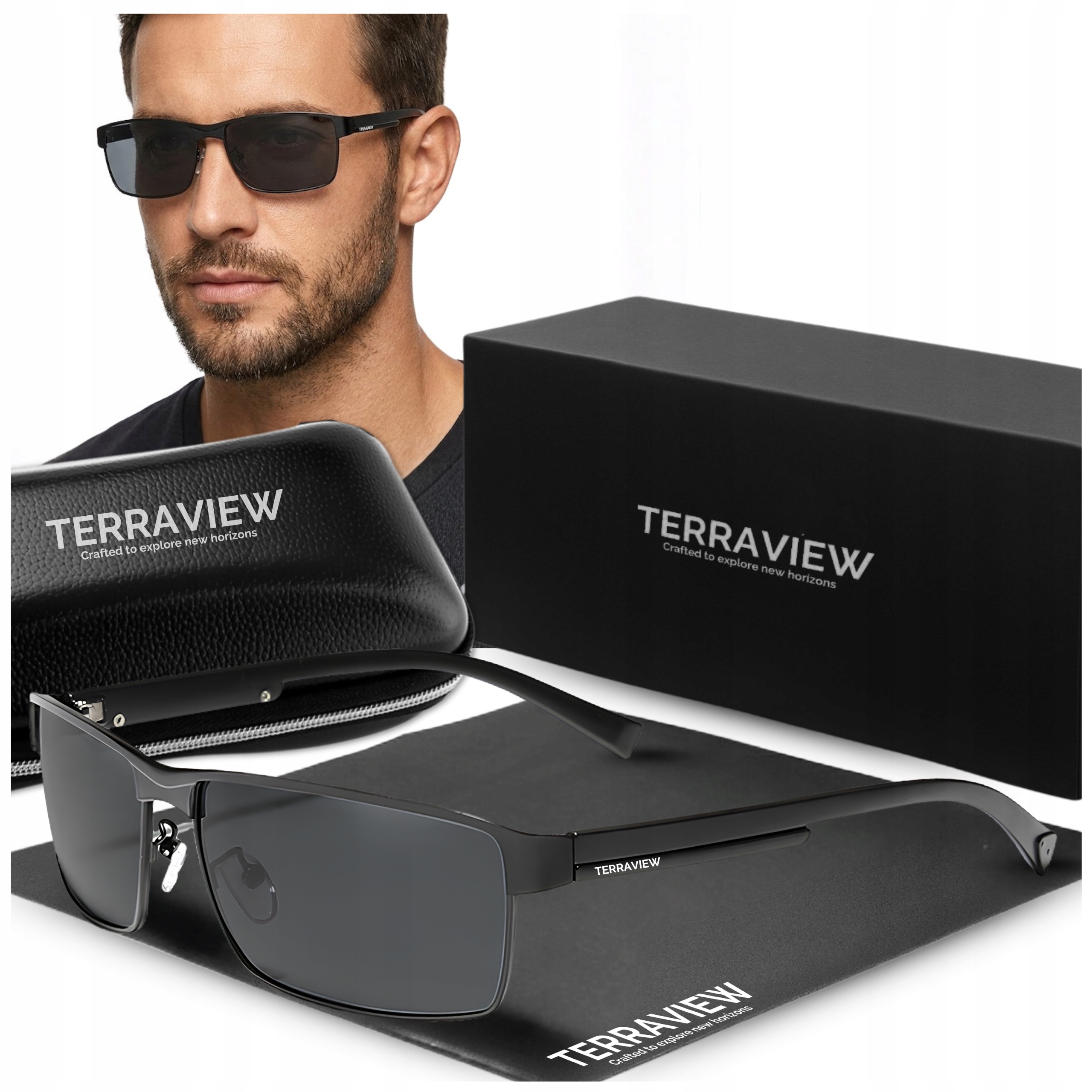 Okulary przeciwsłoneczne męskie Terraview pilotki z polaryzacją UV400 + Etui (Czarne)