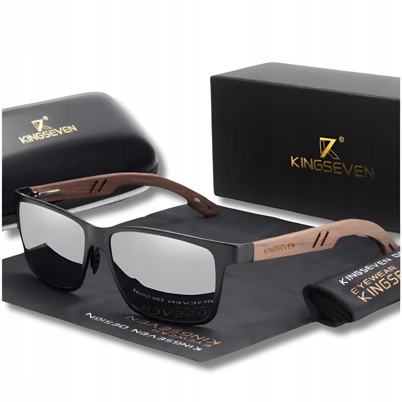 Do każdej zakupionej sztuki okularów dołączone jest oryginalne etui marki Kingseven, ściereczka do czyszczenia, woreczek materiałowy marki Kinseven, tester polaryzacji oraz pudełko.