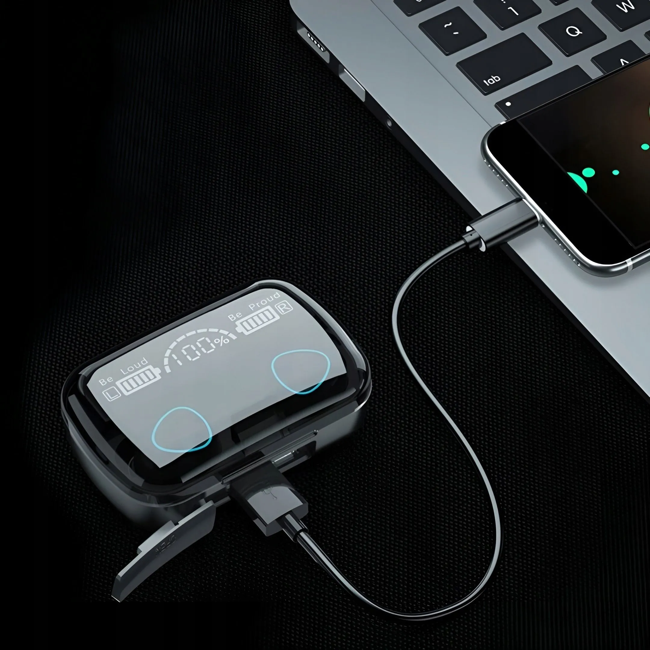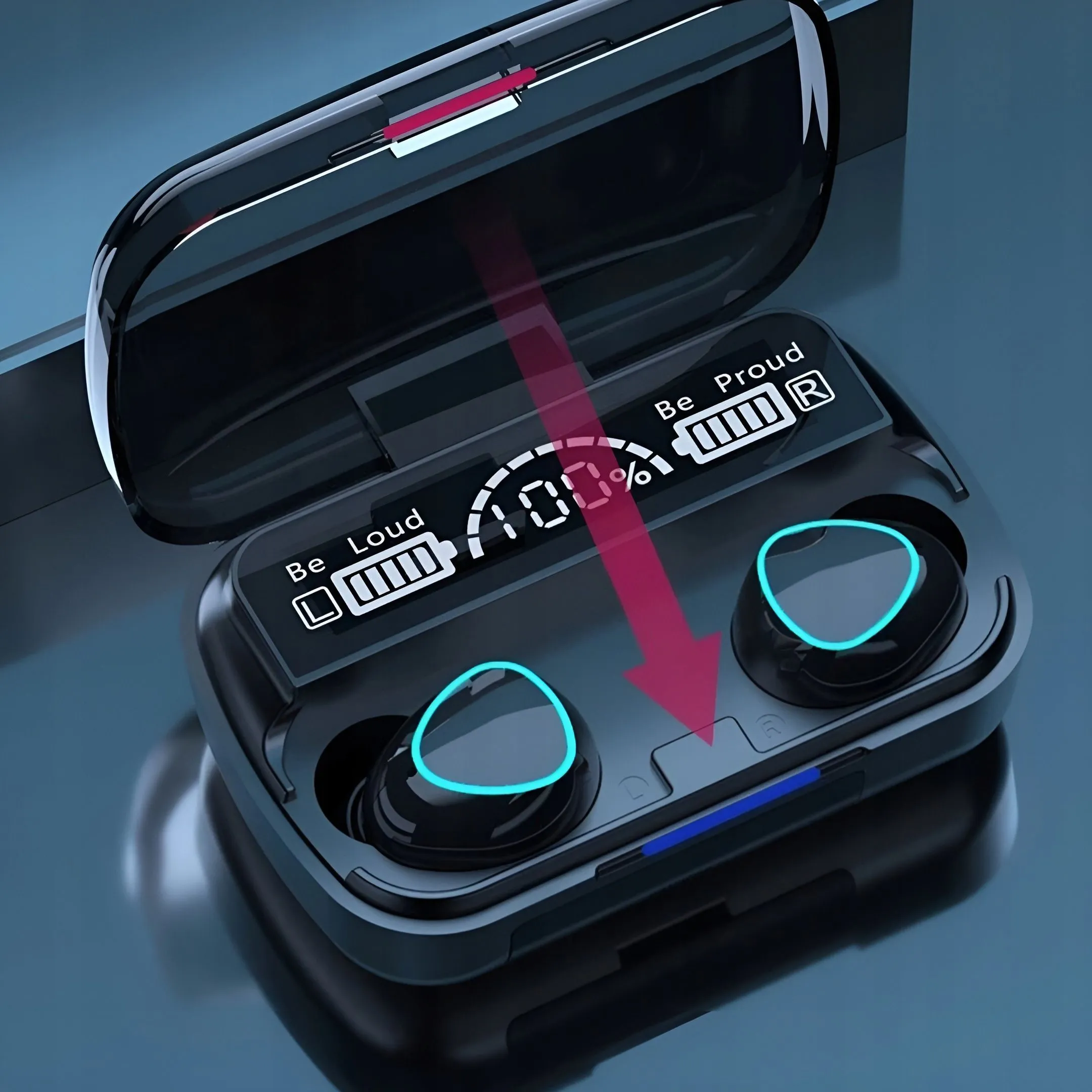 W nowoczesnym etui dla słuchawek ukryty został wydajny akumulator o pojemności 1500 mAh, gwarantuje to wielokrotne, błyskawiczne naładowanie dwóch słuchawek do pełnej baterii.