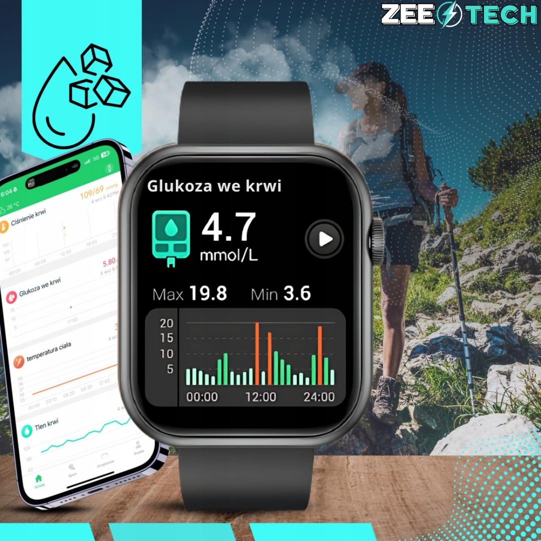 Model:Smart watch damski 4 paski j.polski glukoza