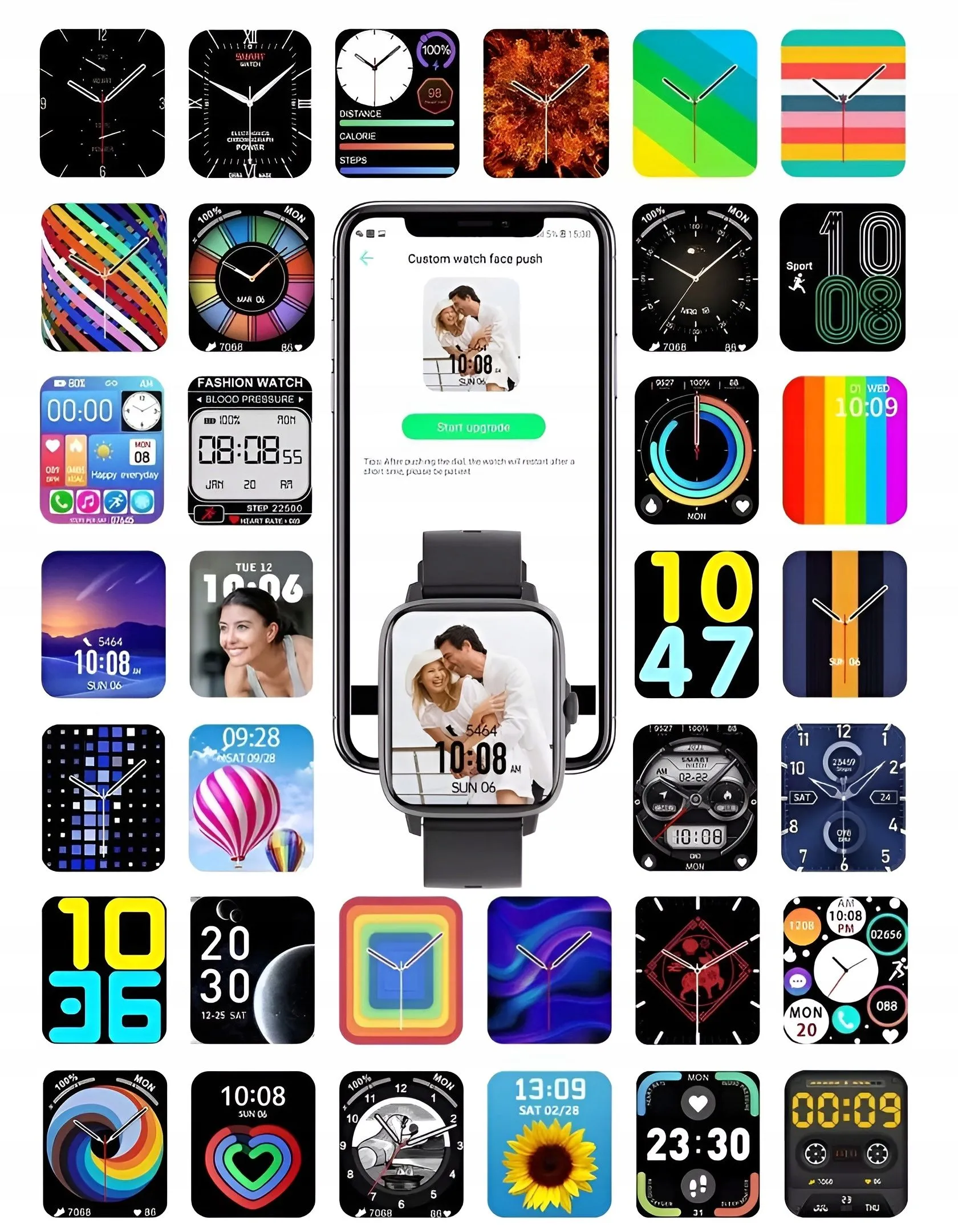 Wbudowana różnorodność nowych tarcz zegarka, w tym różne dynamiczne tarcze zegarka. Wybierz jedną z listy, a odmienisz wygląd zegarka. Niewystarczająco? Możesz również wgrać swoją unikalną grafikę lub zrobić zdjęcie i ustawić je jako tło.