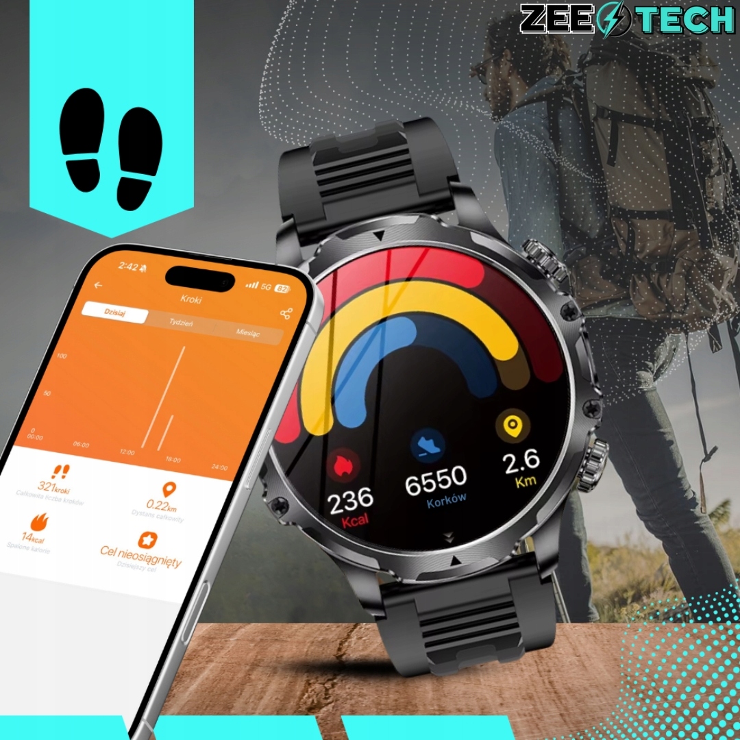 Nasz smartwatch posiada menu oraz aplikację w języku polskim, dzięki czemu obsługa jest prosta i komfortowa. Wszystkie funkcje, ustawienia i powiadomienia masz dostępne w swoim języku – bez barier i domyślania się znaczenia komunikatów.