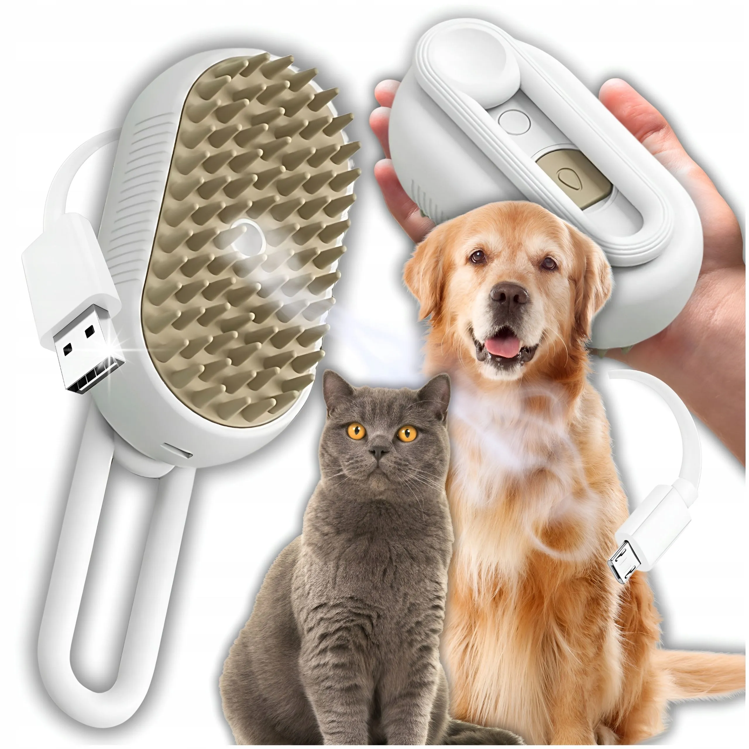 Odkryj nową jakość pielęgnacji dla Twojego futrzanego przyjaciela dzięki naszej Szczotce Parowej! To niezwykłe rozwiązanie łączy trzy kluczowe funkcje: