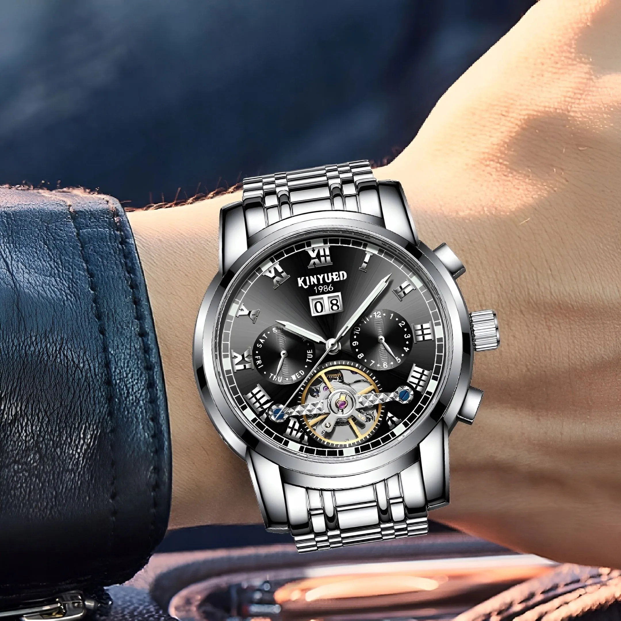 Szukasz wyjątkowego zegarka, który podkreśli Twój elegancki styl i wzbogaci Twoją kolekcję? Oto propozycja, która spełni Twoje oczekiwania - Kinyued Tourbillon.
