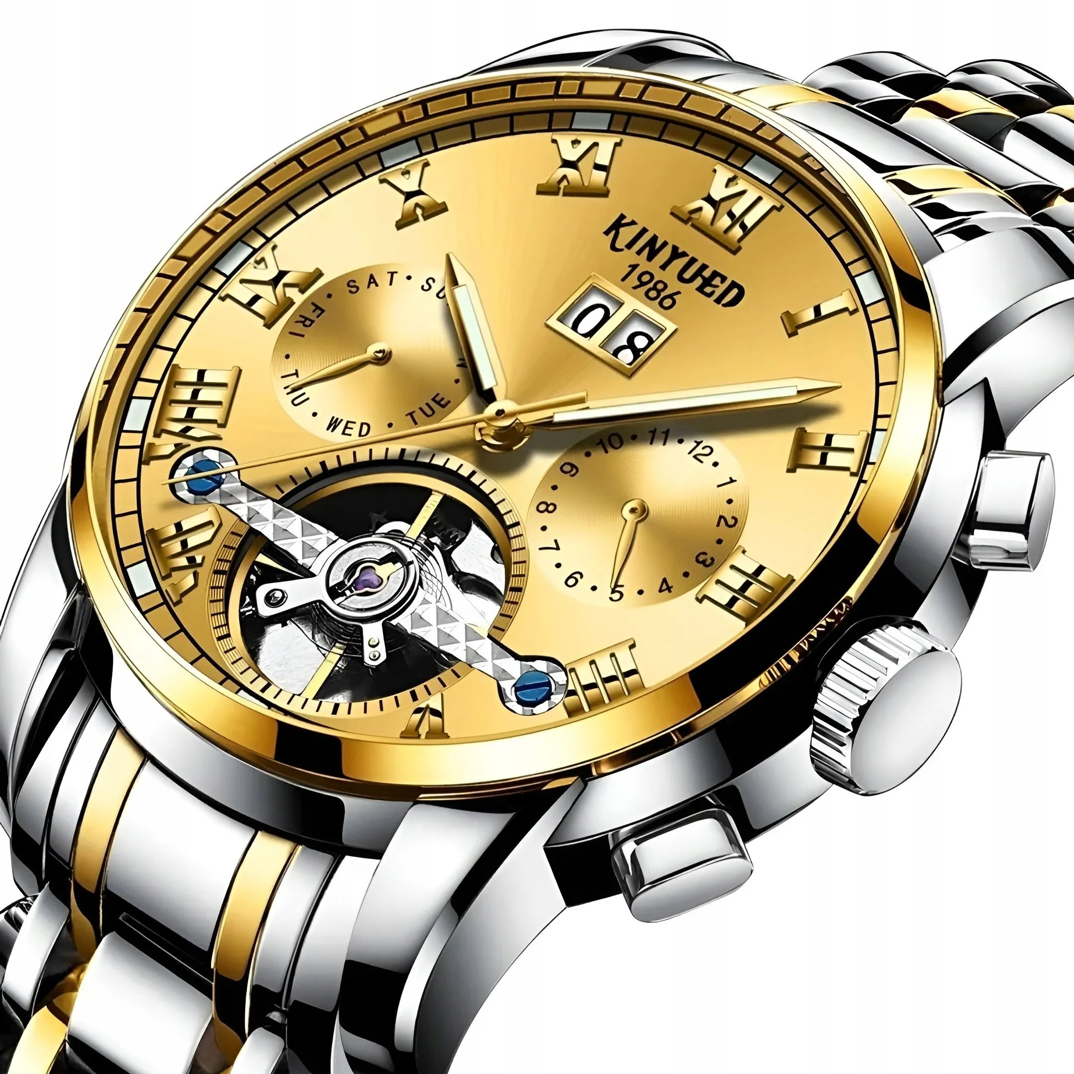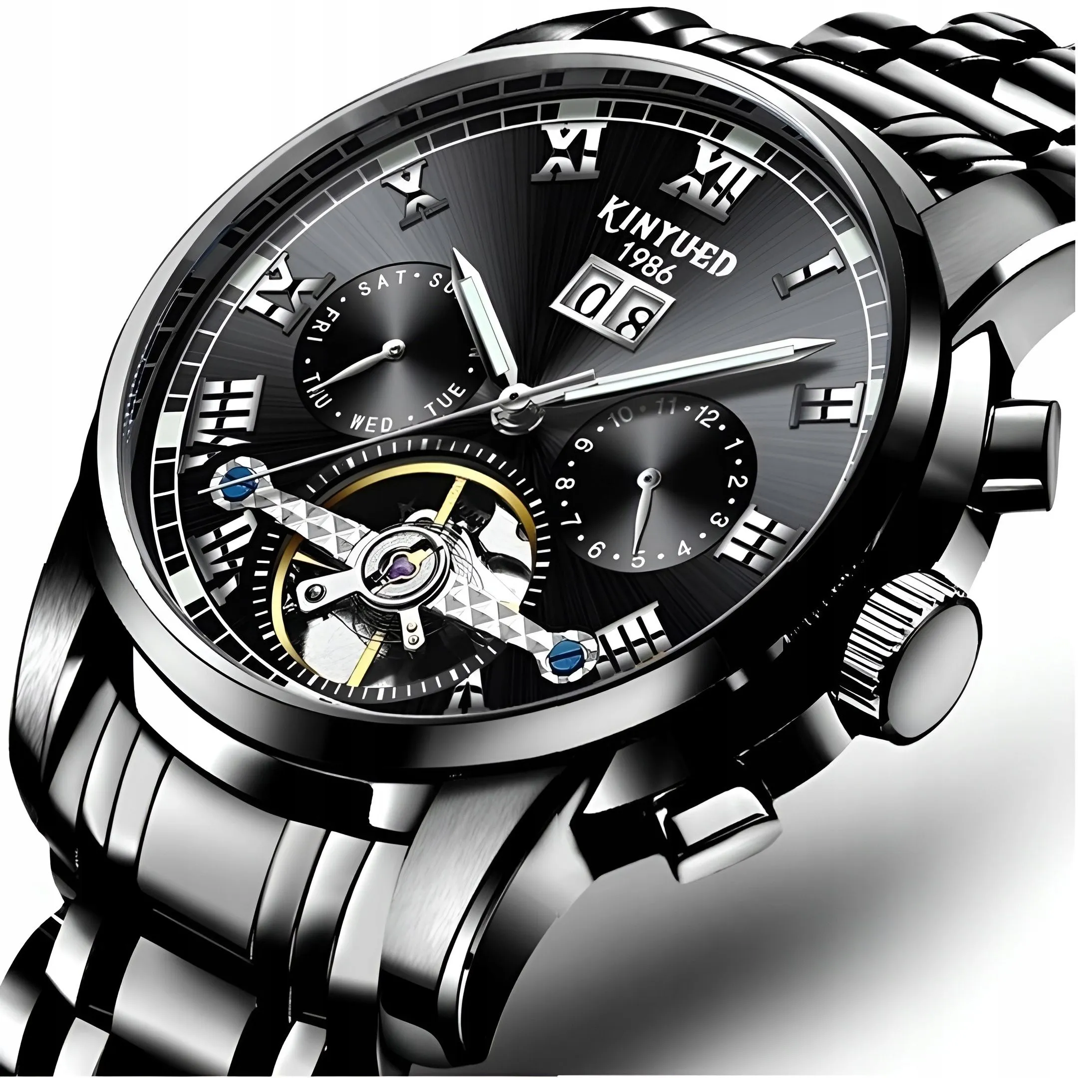 Kinyued Tourbillon to połączenie luksusu, klasy i doskonałej jakości wykonania. Wyposażony w unikalny mechanizm Tourbillon, zegarek gwarantuje niesamowitą precyzję ruchu, co sprawia, że jest to nie tylko piękna ozdoba na Twoim nadgarstku, ale również praktyczne narzędzie codziennego użytku.