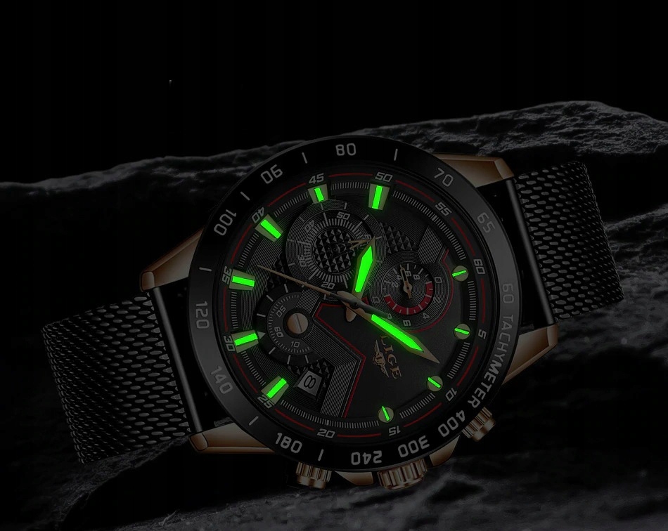 Funkcja Neobrite czyli fluorescencyjne wskazówki zapewni nam możliwość odczytu godziny w ciemności.