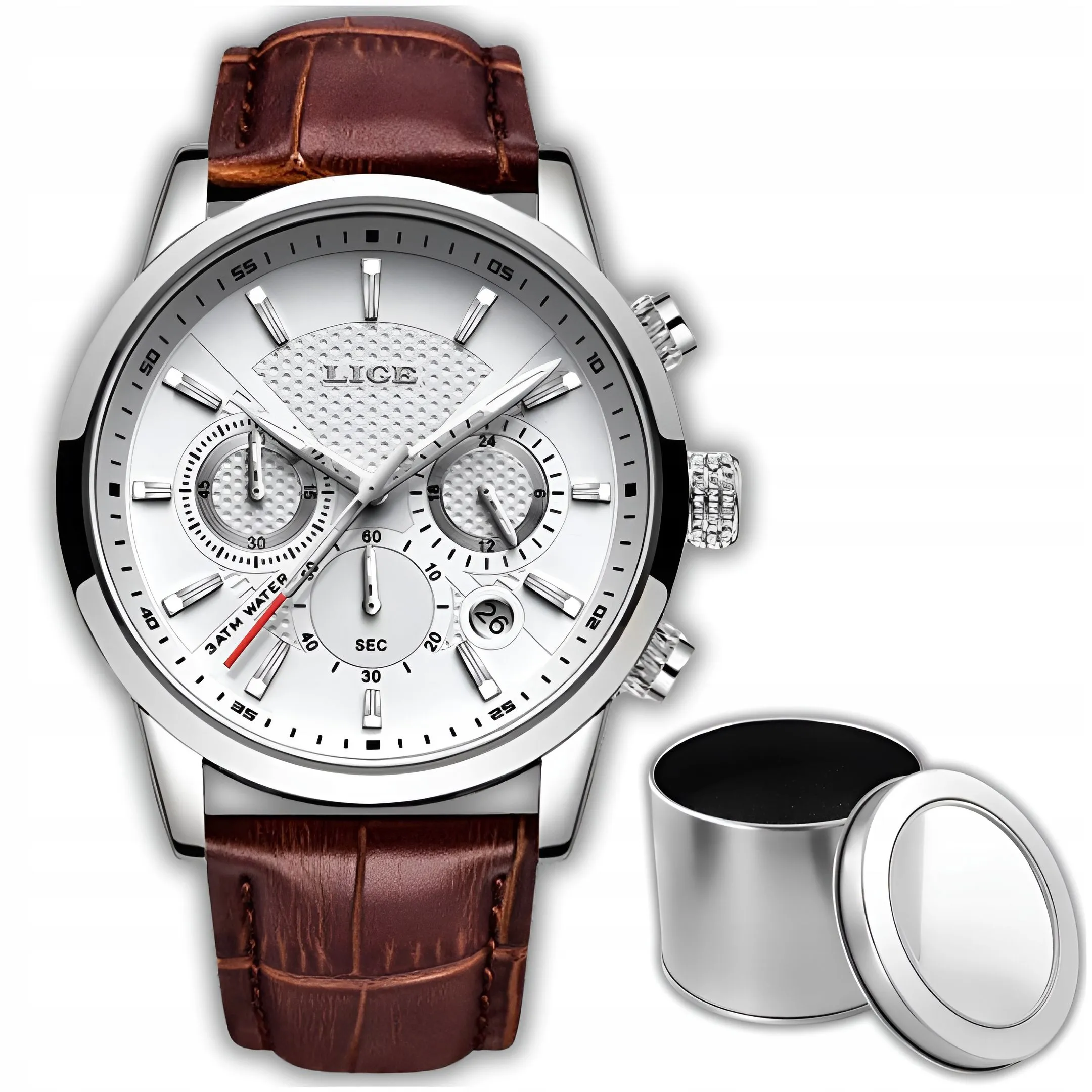 Zegarek jest wodoodporny w klasie szczelności WR30 = 3 ATM.