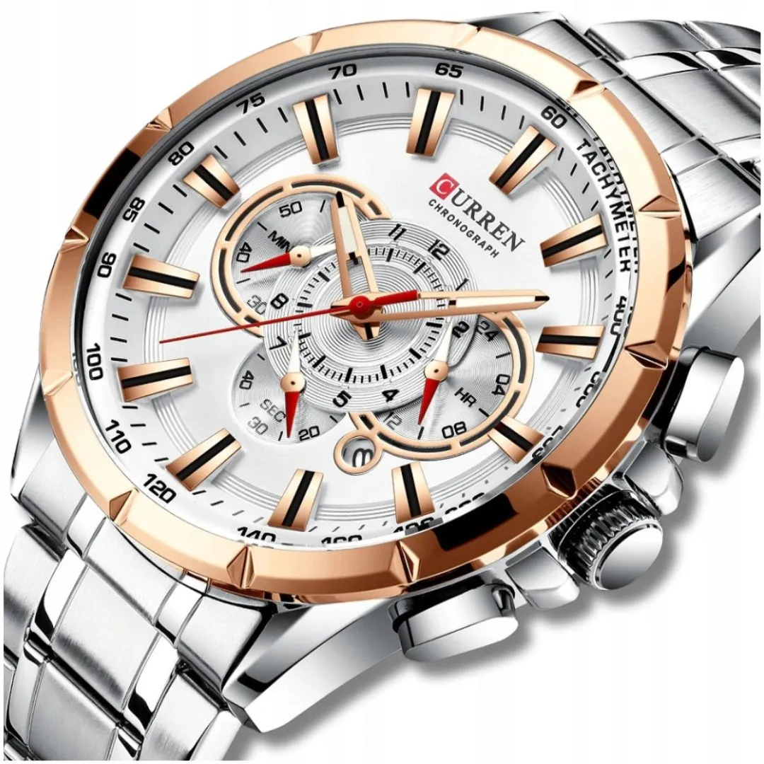 Model:Zegarek męski kwarcowy stalowy chronograf datownik