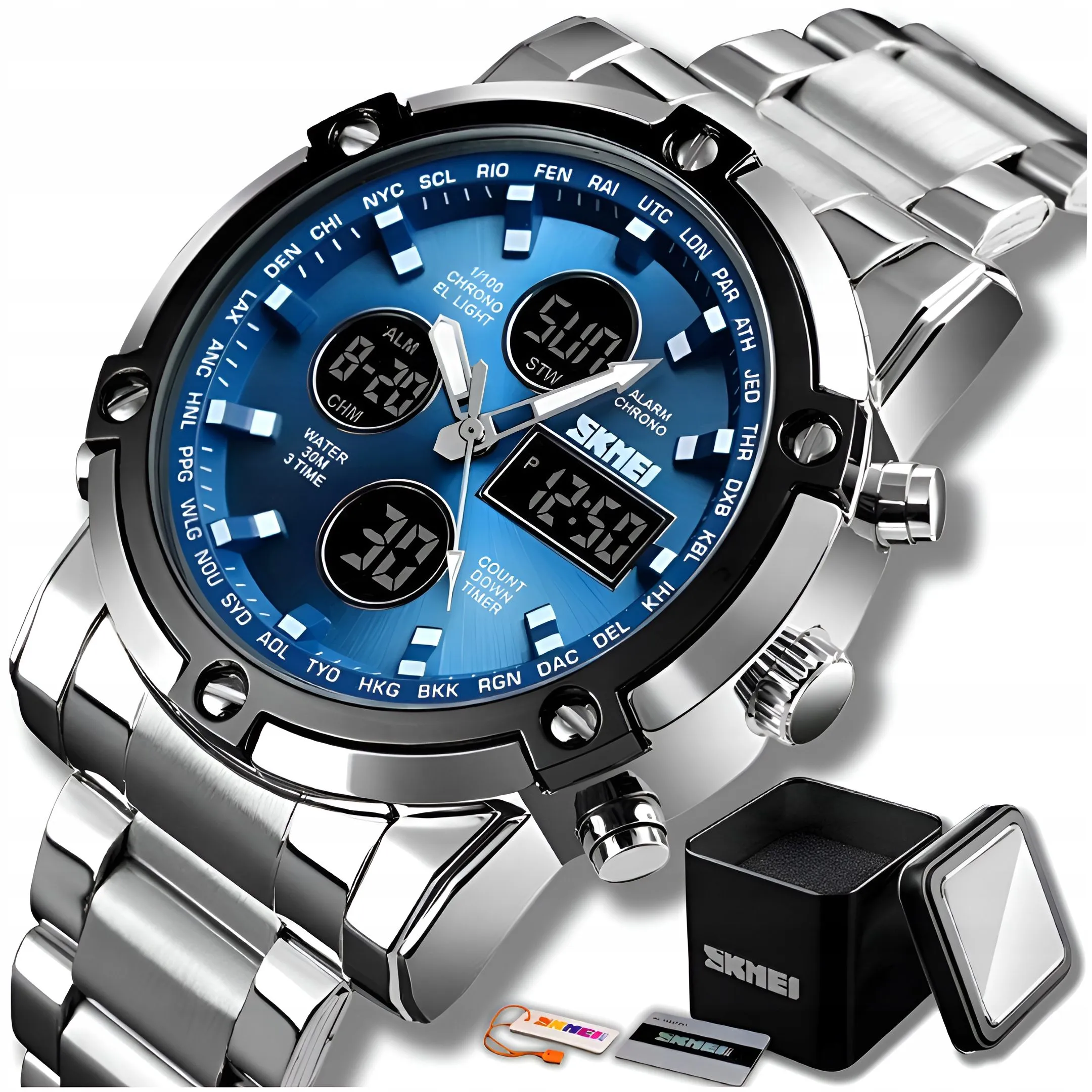 Zegarek męski SKMEI sportowy cyfrowy modny stoper datownik alarm LED + Pudełko