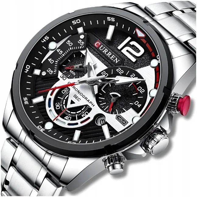 Model:Zegarek męski kwarcowy chronograf datownik stalowy