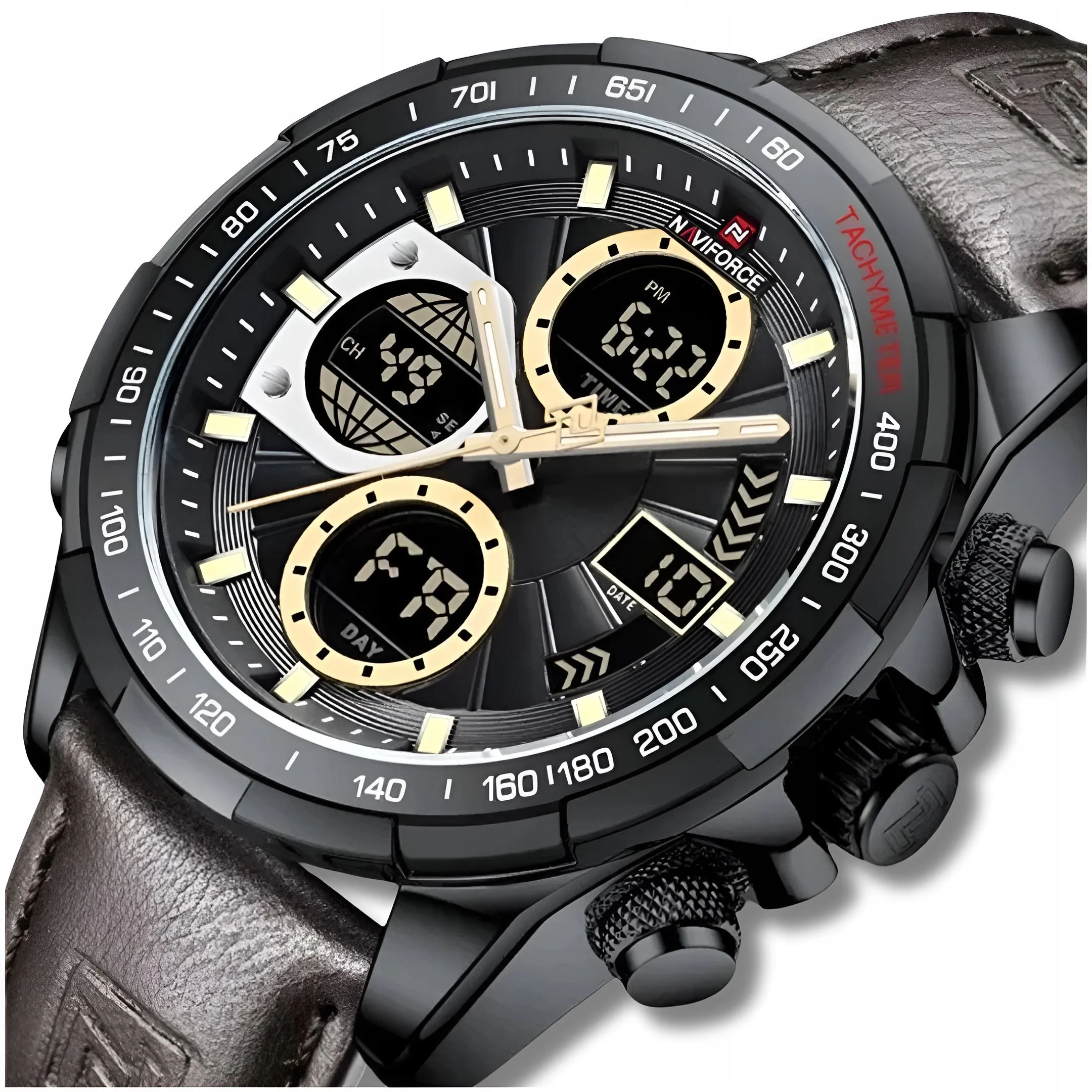 Nowoczesny zegarek Naviforce oferuje wiele przydatnych funkcji, które ułatwią Ci życie. Niezależnie od tego, czy jesteś zainteresowany wyświetlaniem daty i dnia tygodnia, korzystaniem ze stopera czy aktywacją wbudowanego alarmu - zegarek Naviforce jest idealniedostosowany do Twoich potrzeb.